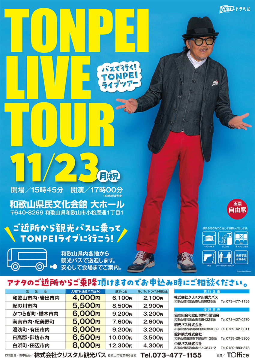 TEL.073-477-1155 TONPEIライブツアー係(株式会社 クリスタル観光)